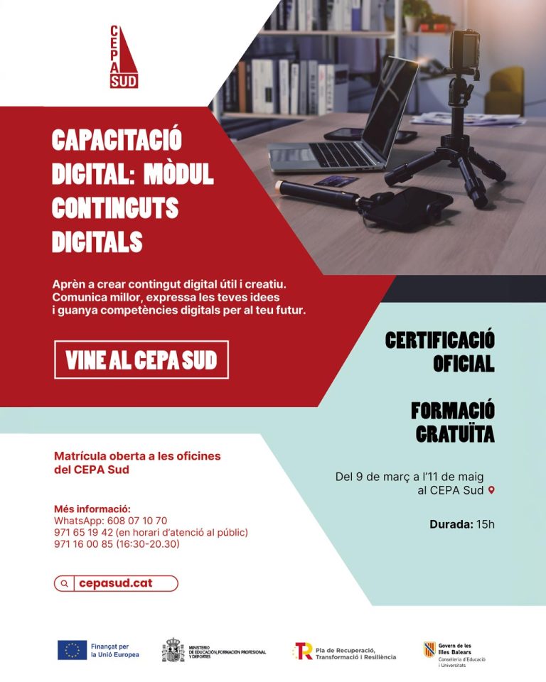 El CEPA SUD compta amb una orientadora que vos ajudarà a resoldre dubtes sobre hàbits i tècniques d’estudi, planificació del temps, orientació acadèmica i sortides professionals. Per contactar amb ella, podeu demanar cita prèvia.