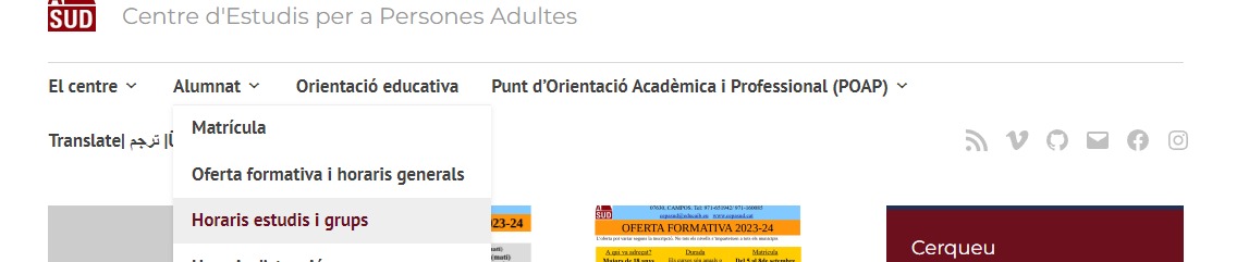 🔊📢📆Actualitzats els horaris del curs 23/24 setembre 2, 2023 Contingut General https://cepasud.cat/alumnat/horaris-estudis-i-grups/