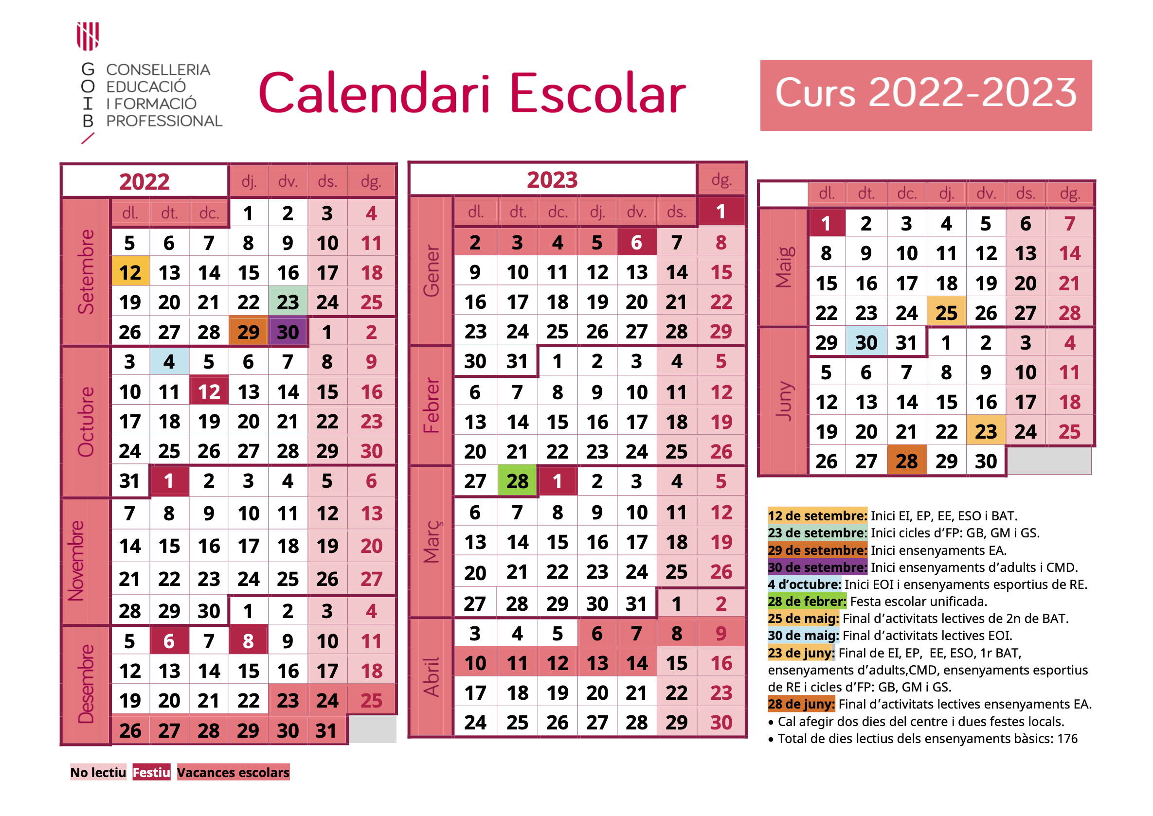 A més dels dies marcats com a festius, també ho són: