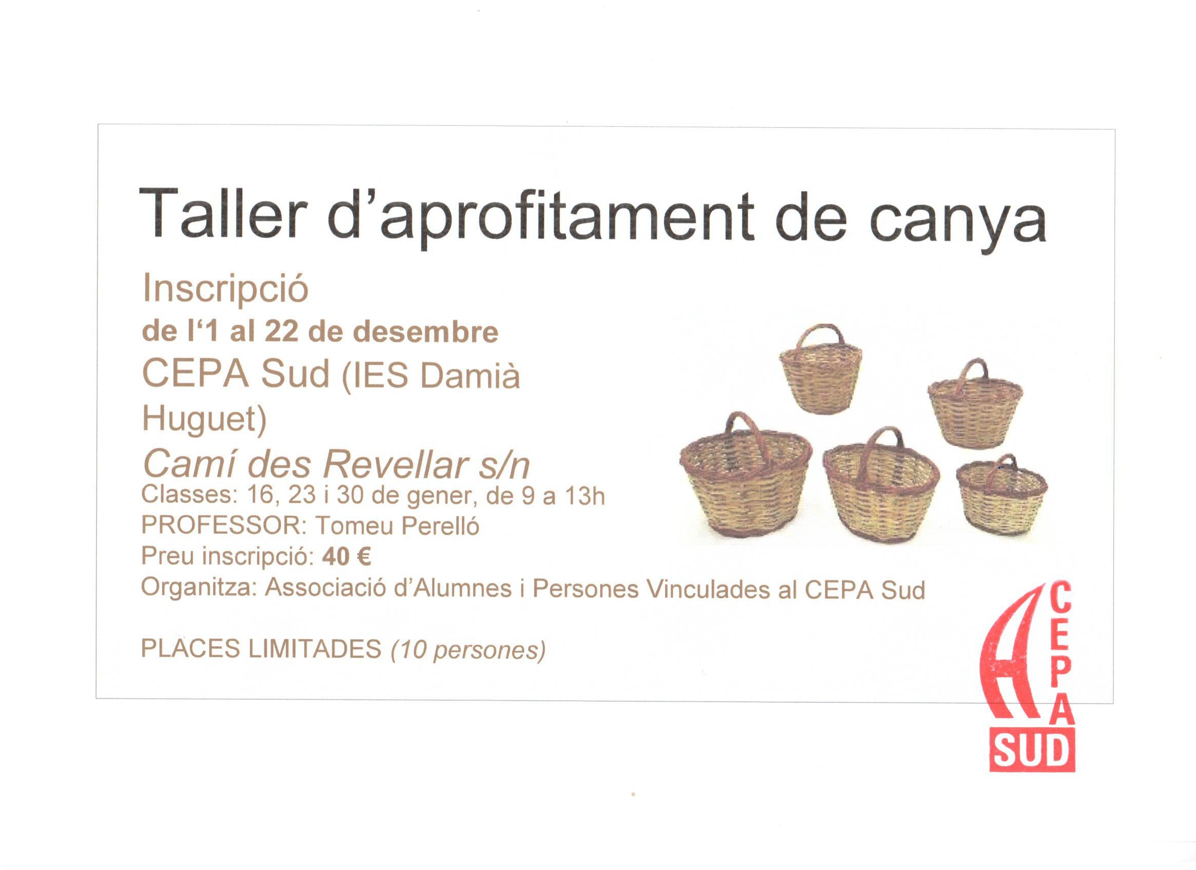Ens feim ressò de l’activitat de l’Associació d’Alumnes i Persones Vinculades al CEPA Sud que organitza un taller d’aprofitament de canyes. Més informació a la