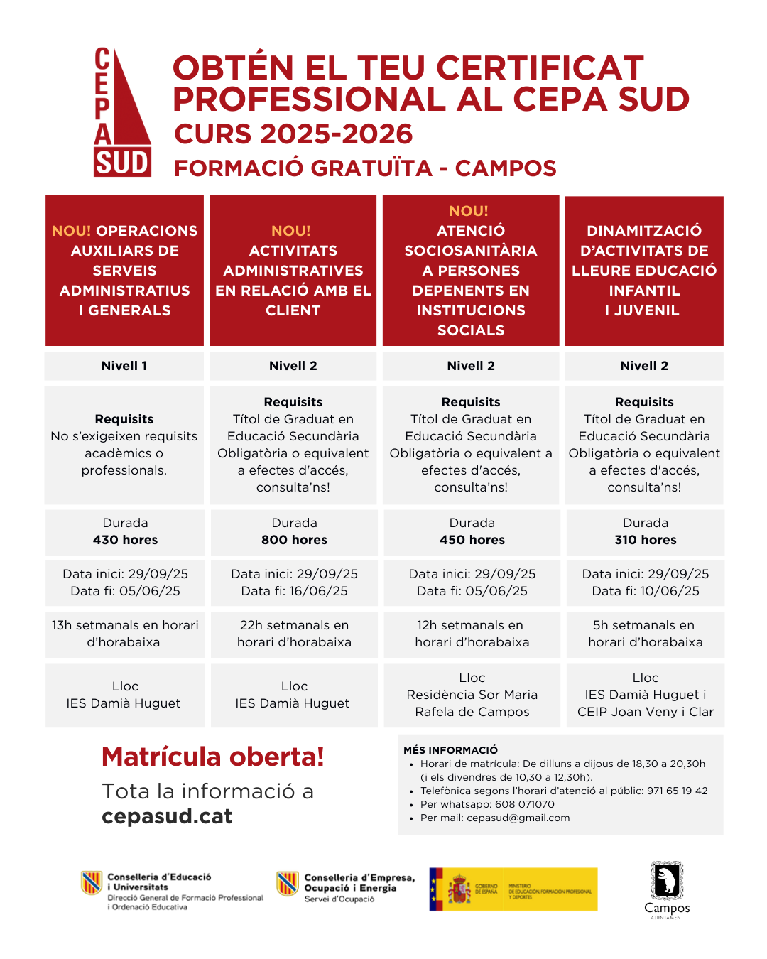 T’interessa treballar en l’àmbit administratiu, educatiu o sociosanitari? Aquest curs 2025-2026 pots formar-te amb nosaltres i aconseguir un certificat oficial 💼📚 📍 A Campos📅 Inici: