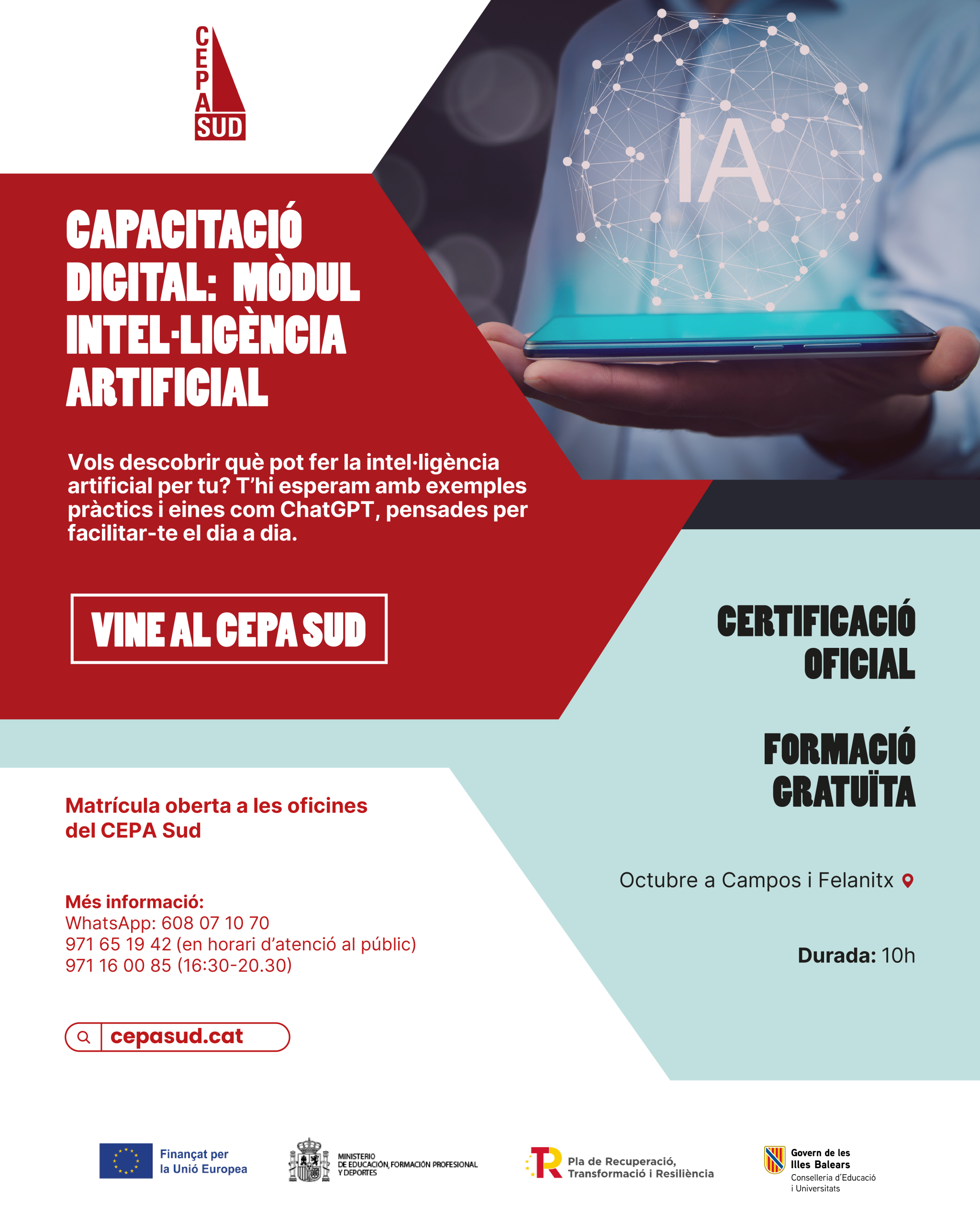 Vols descobrir què pot fer la intel·ligència artificial per tu? 🤖 Al CEPA Sud aprendràs com funciona i com pots utilitzar-la en el teu dia