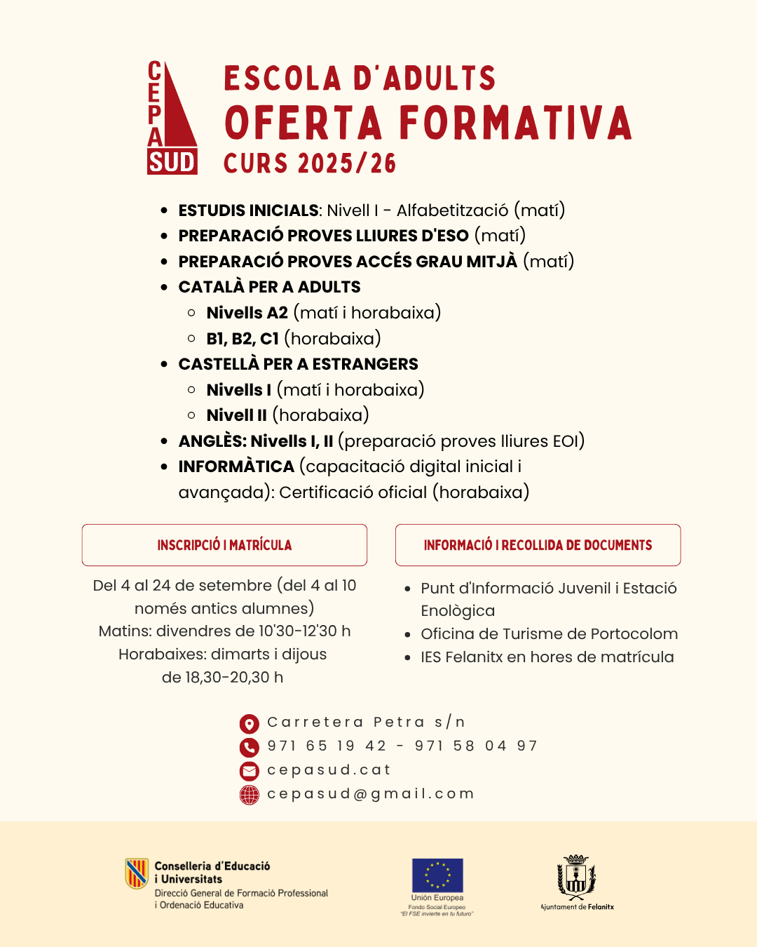 📚 Ja pots consultar l’oferta formativa 2025-2026 del CEPA Sud! Vols continuar amb els teus estudis? Necessites el graduat? T’agradaria millorar el teu català, castellà