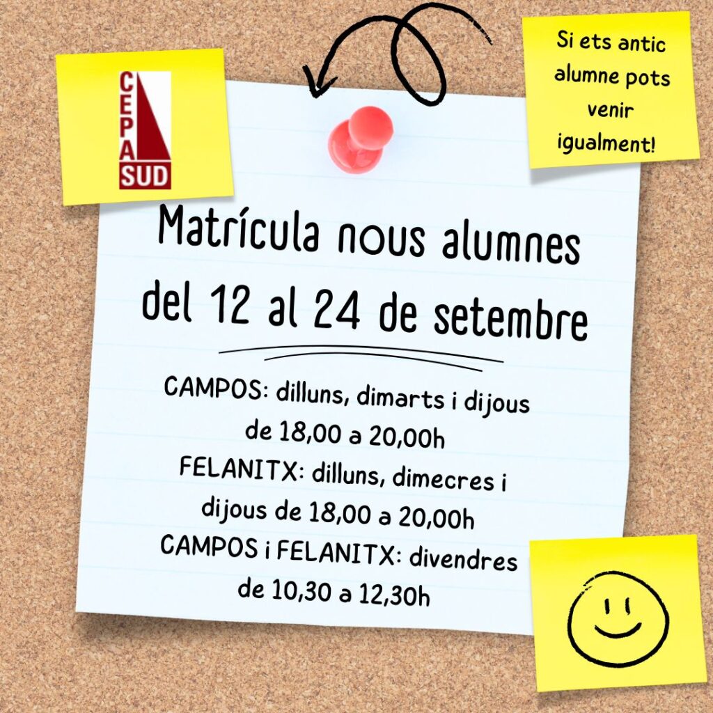 Començam matrícula, us hi esperam!