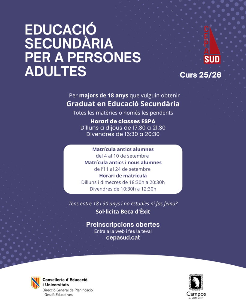 🎓 Vols obtenir el Graduat en Educació Secundària? Al CEPA Sud t’ajudam a aconseguir-ho! 💪