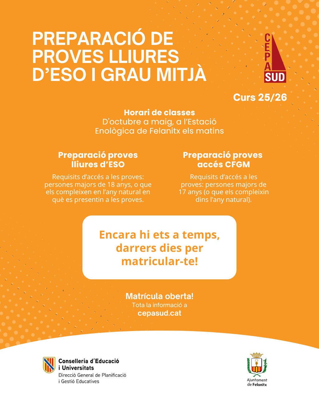 Matrícula antics i nous alumnes de l’11 al 24 de setembre