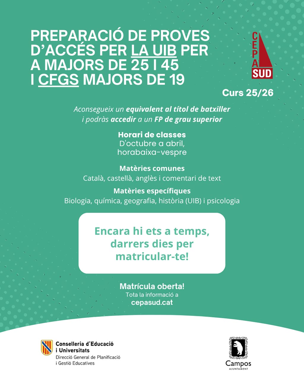 - Haver superat la prova d’accés a la universitat per a majors de 25 o 45 anys.