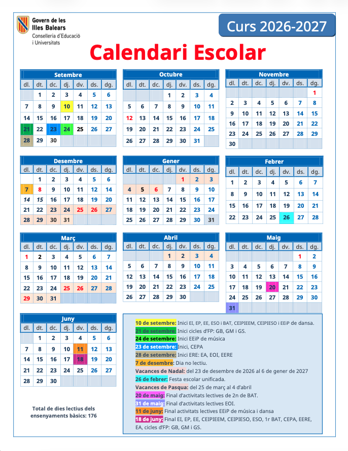 Calendari Escolar Curs 2026-2027